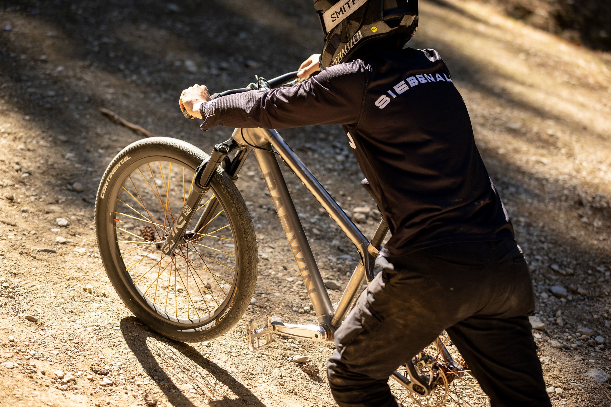 Самое уникальное в этом велосипеде — возможность выбрать собственную геометрию рамы. Моя предыдущая рама казалась мне слишком маленькой под мой рост, так что эта была разработана с учетом моего стиля катания. Этого не найти в обычном веломагазине. Раньше я никогда не катался на титановом байке и был настроен скептически. Но после прыжков на сложных трассах мое мнение полностью изменилось. Жесткость обеспечивает велосипеду лучшую отдачу при выполнении сложных трюков, а прочность означает, что я не боюсь сломать раму посреди заезда. - Эйден Сибеналер