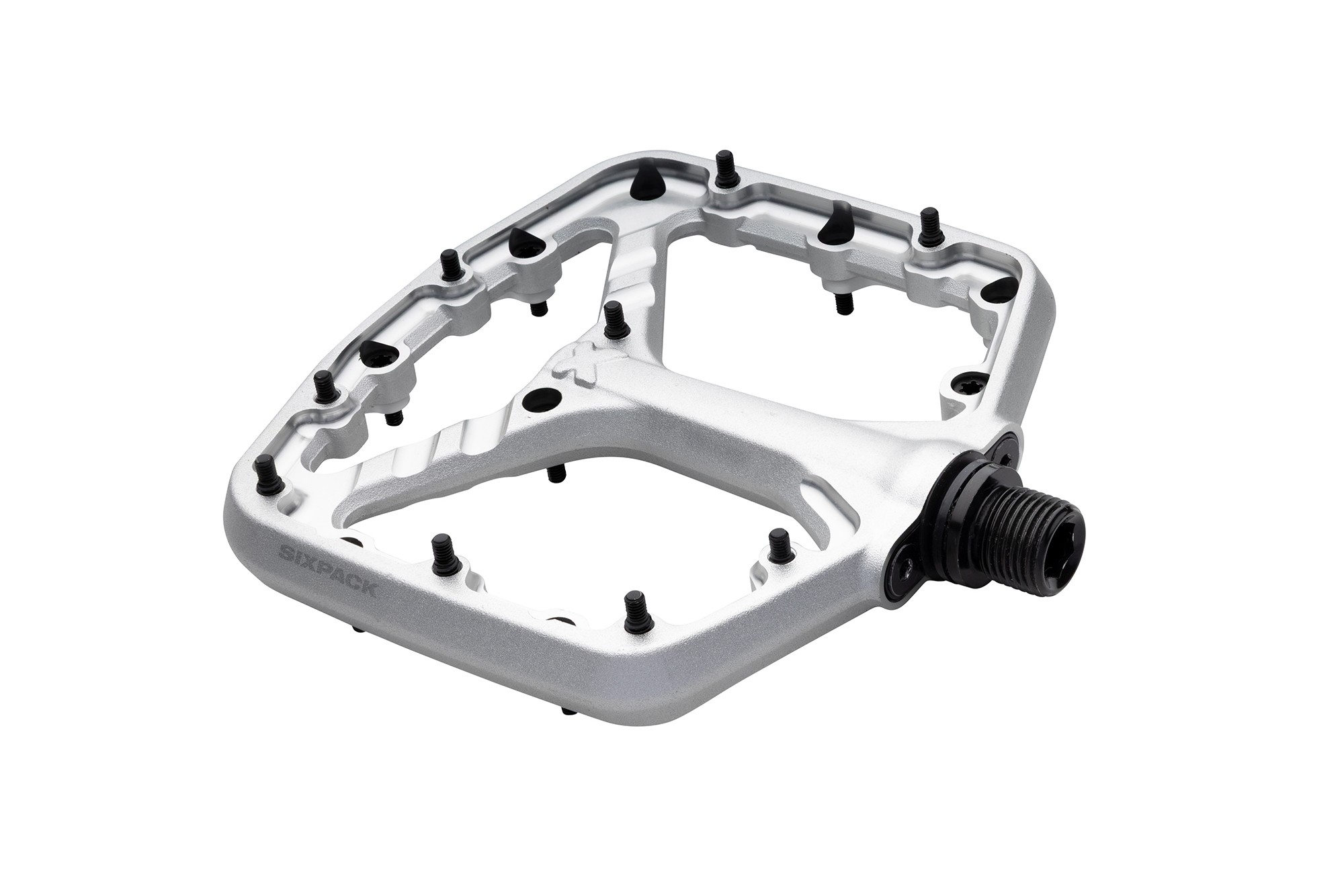 Корпус сделан из алюминия, ось хромолевая, калённая. По 9 шипов на сторону. Вместо стандартного равномерного расположения шипов, характерного для большинства плоских педалей, SixPack использует «умное распределение шипов,» когда больше шипов находится на переднем крае педали, что обеспечивает надежное сцепление там, где это наиболее необходимо.
