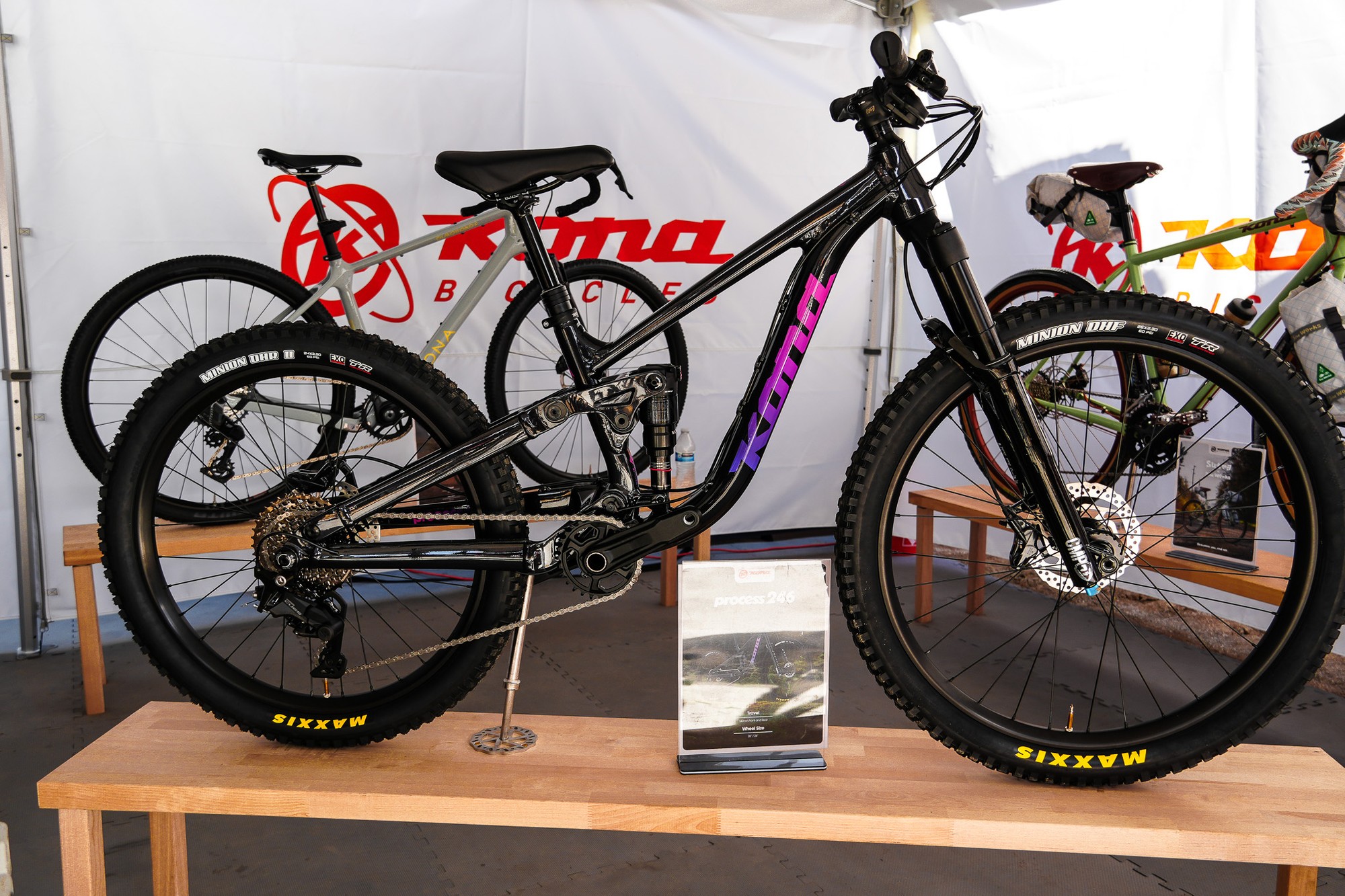 Буквально через пару дней после случившегося конфуза на Sea Otter Classic 2024 — компания Kent Outdoors, владеющая Kona в тот момент, выставила её на продажу. Сообщество уже решило, что Kona — всё и пора заказывать панихиду, но через месяц пришли новости, что бренд обратно выкупили его создатели — Дэн Герхард (Dan Gerhard) и Джейк Хейлброн (Jake Heilbron). И вот, два года спустя, Kona вернулась на Sea Otter Classic и снова разложила свой тент. И внутри даже есть новинки!