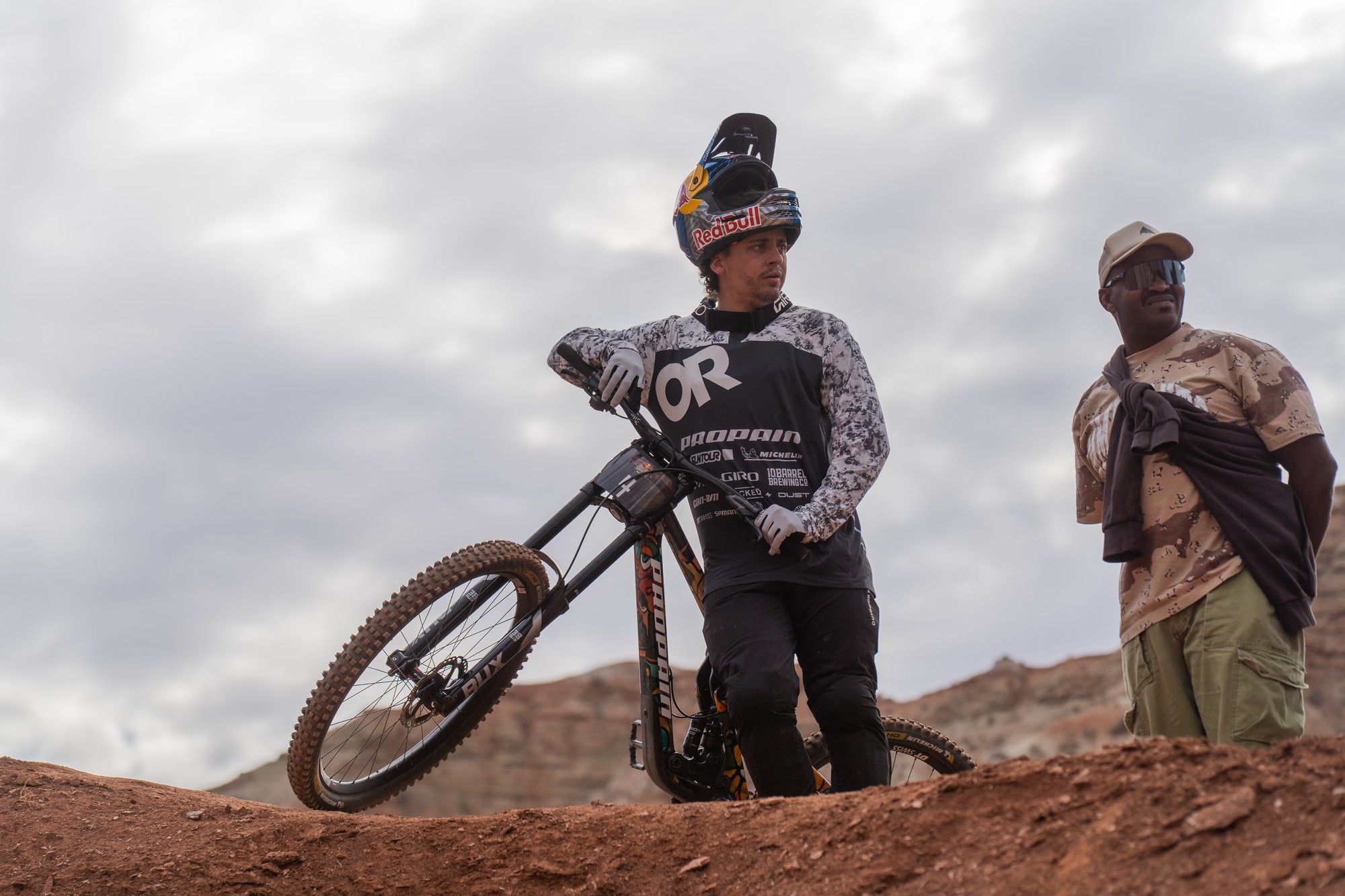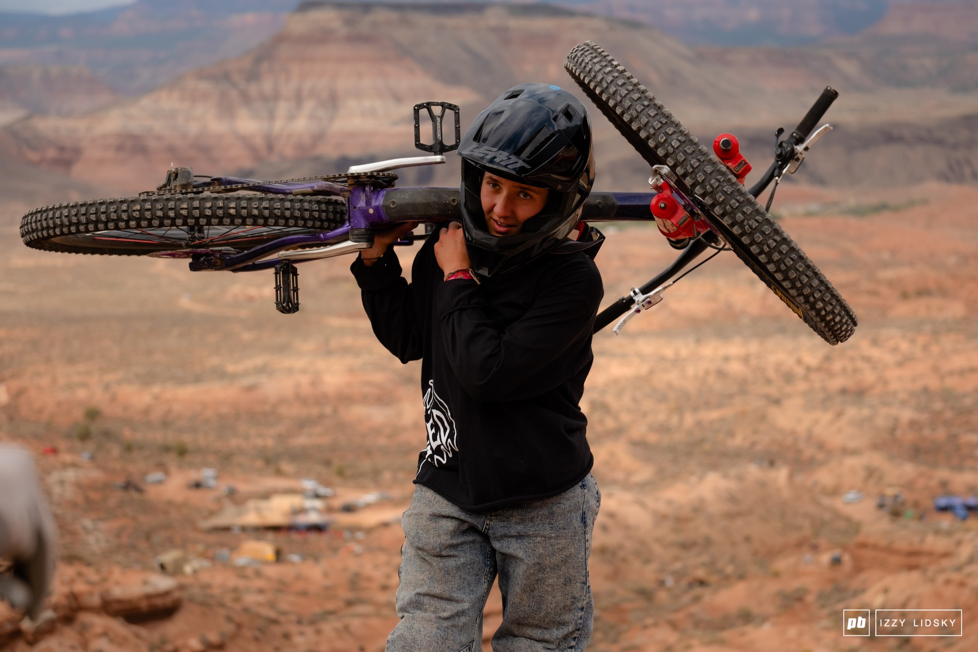 Карсон Сторч уже в 8-й раз на Рампаге и с парой подиумов за спиной, так что знает к чему готовиться и уже во всю прыгает элементы на своей линии.