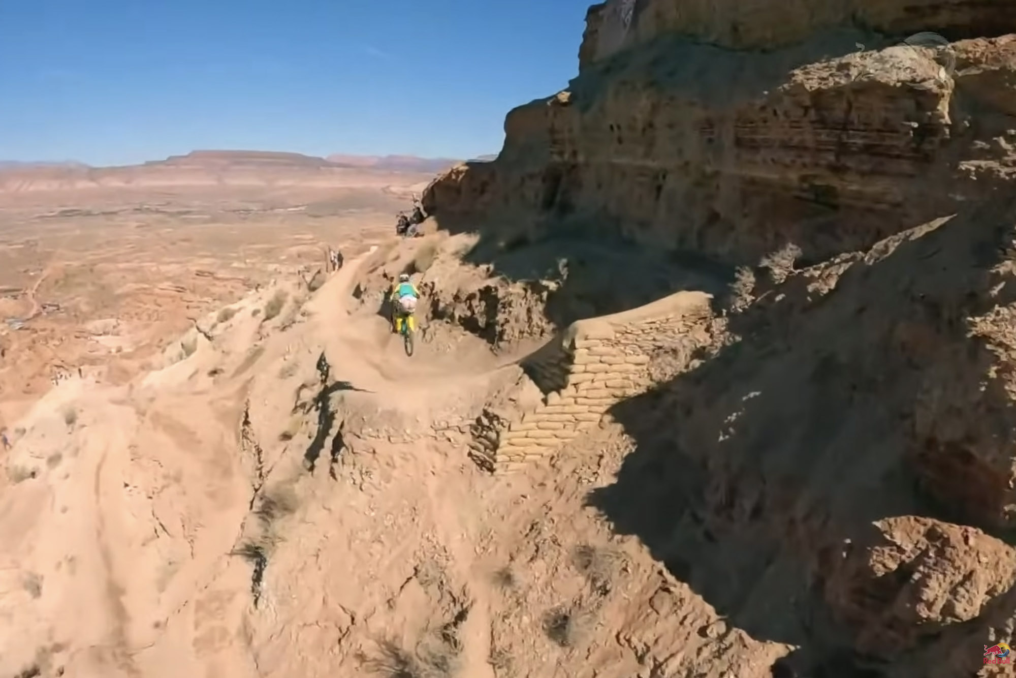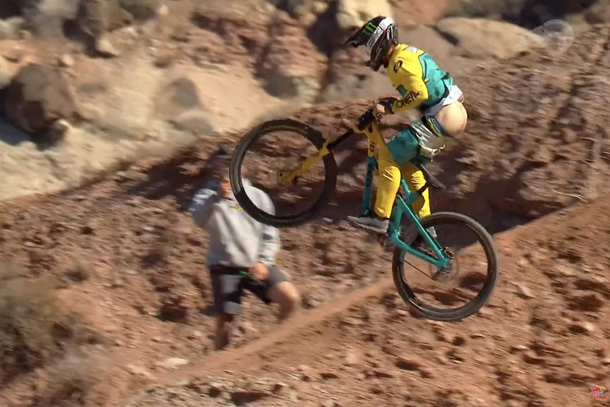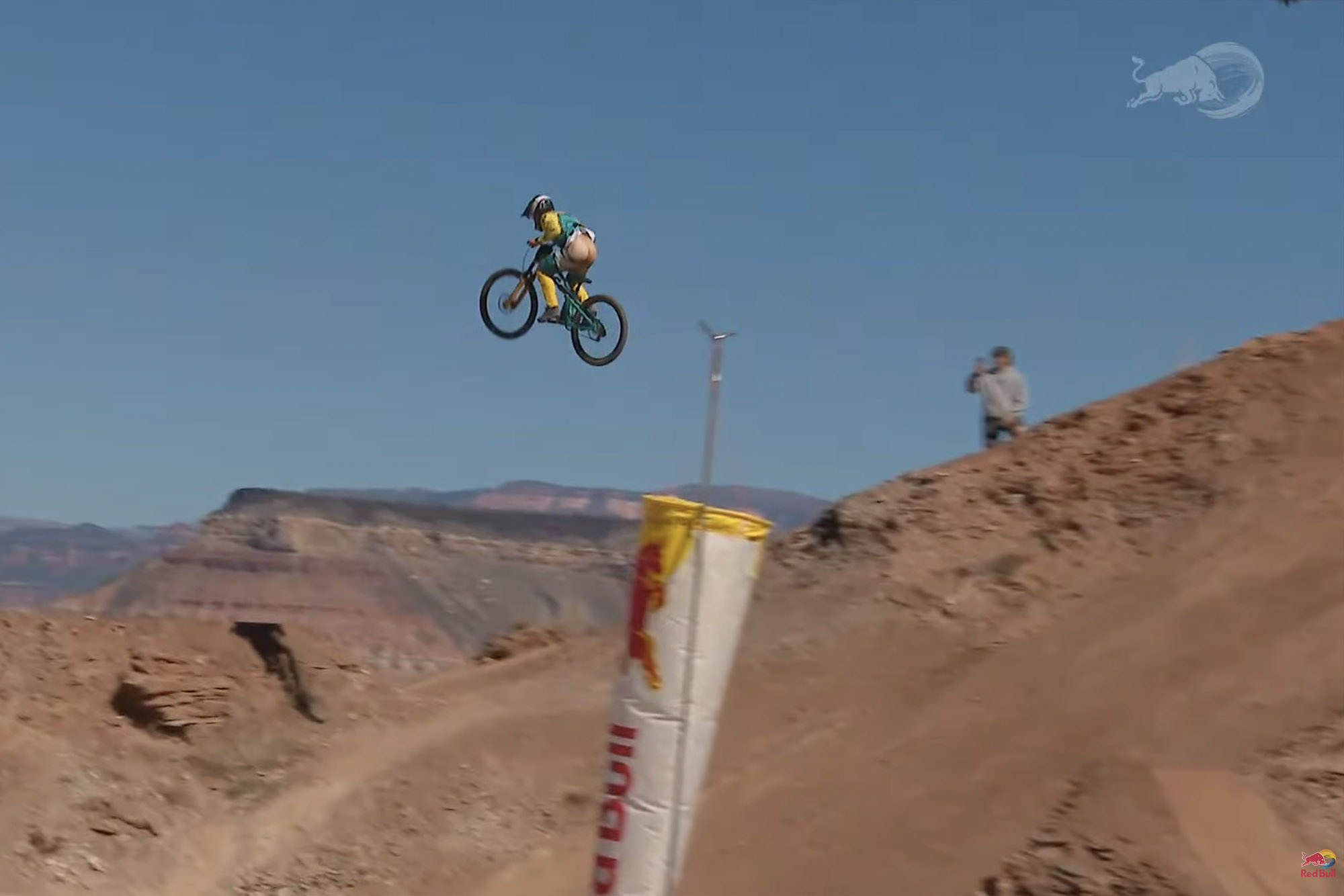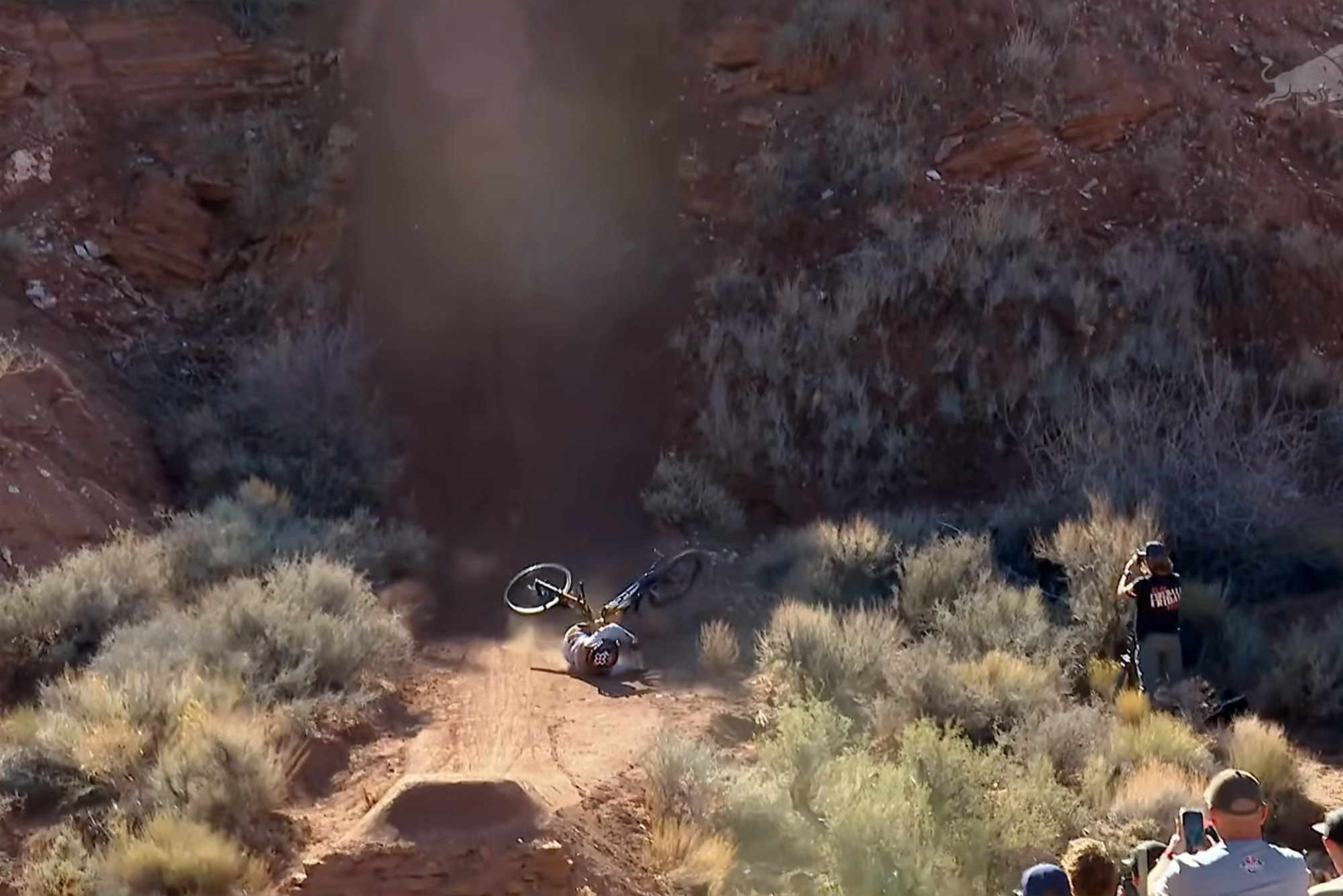 В первую очередь хочется послать исцеляющие лучи всем убравшимся. Кажется, в этом году участники рисковали пуще обычного. В практике убрался новичок Эйден Пэриш, который чуток не долетел 20.4м стэп даун. В практике в четверг Эйден перелетел этот же стэпдаун почти на 8 метров (28м от края вылета до касания заднего колеса), и несмотря на жесткое приземление — выкатил его. Но в следующий раз решил взять поменьше скорости, из-за чего не долетел и отправился в черезрульку. При падении Эйден сломал бедренную кость. Как Эйден сообщил на своей страничке — ему уже воткнули в кость спицу и всё должно быть хорошо. На картинке ниже тот самый дроп.