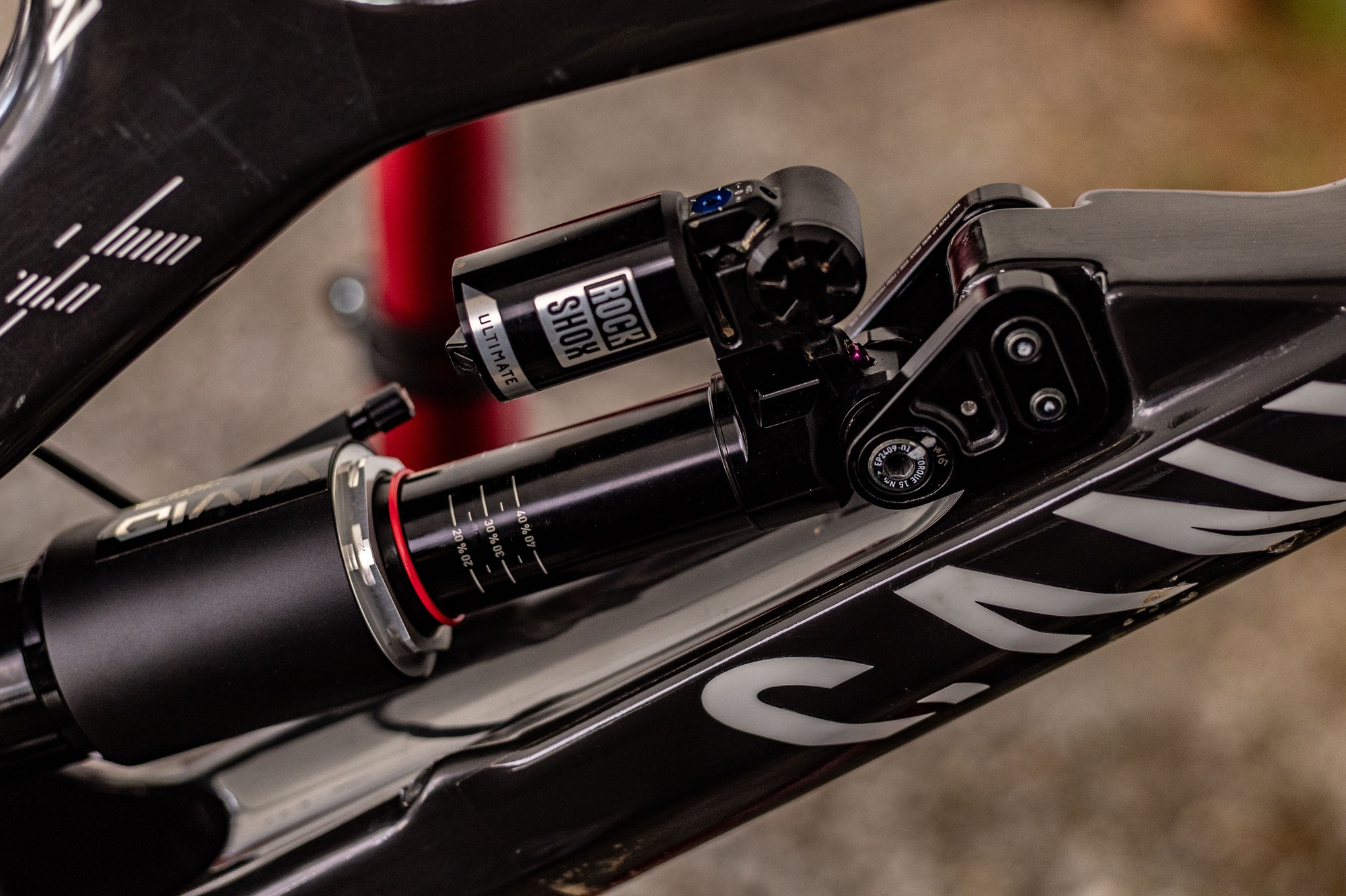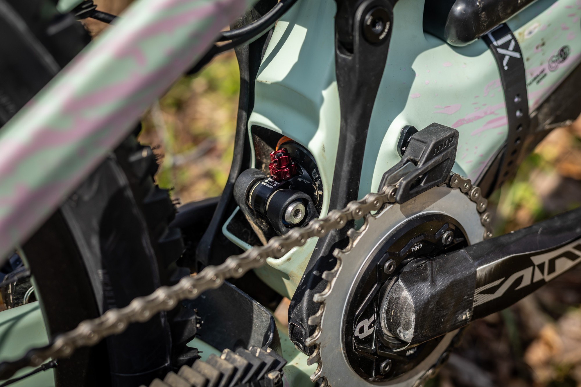 Если увеличить фото — можно разобраться с компоновкой подвески. Она построена по 4-рычжной схеме, а линк крепится к нижней трубе и через него усилие передаётся снизу на аморт. Верхняя часть аморта прикручена к верхней трубе. Конструкция получилась а-ля Propain, но вверх-ногами и без дополнительного линка.