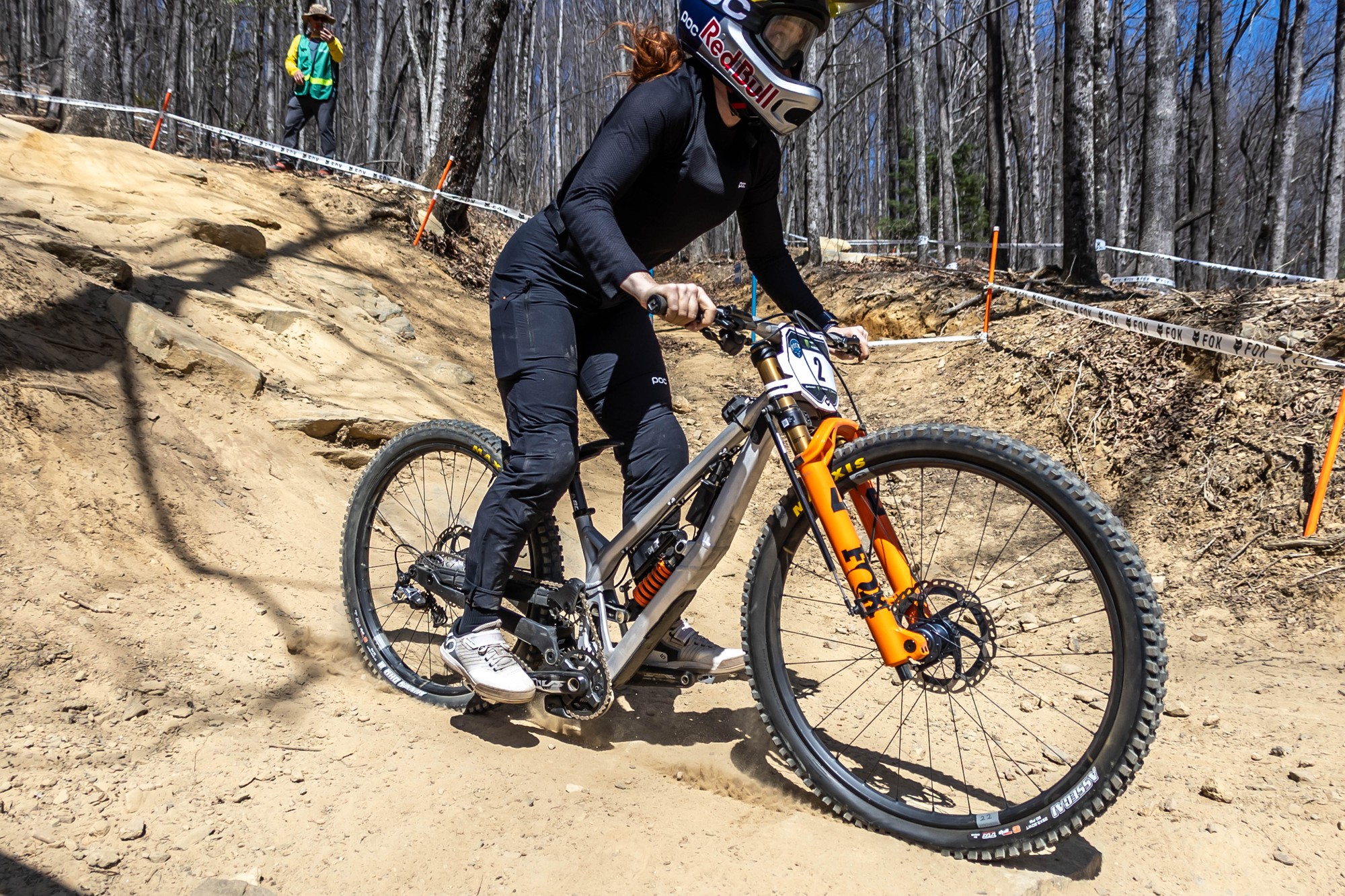 На этом фото Norco с Грейси Хемстрит обновления видно лучше. Вместо пропиленного швеллера у каретки появилась более ажурная конструкция с треугольником. С велосипеда явно скидывают лишние кило, у которого их было с запасом — первые версии прототипа весили в районе 20кг.