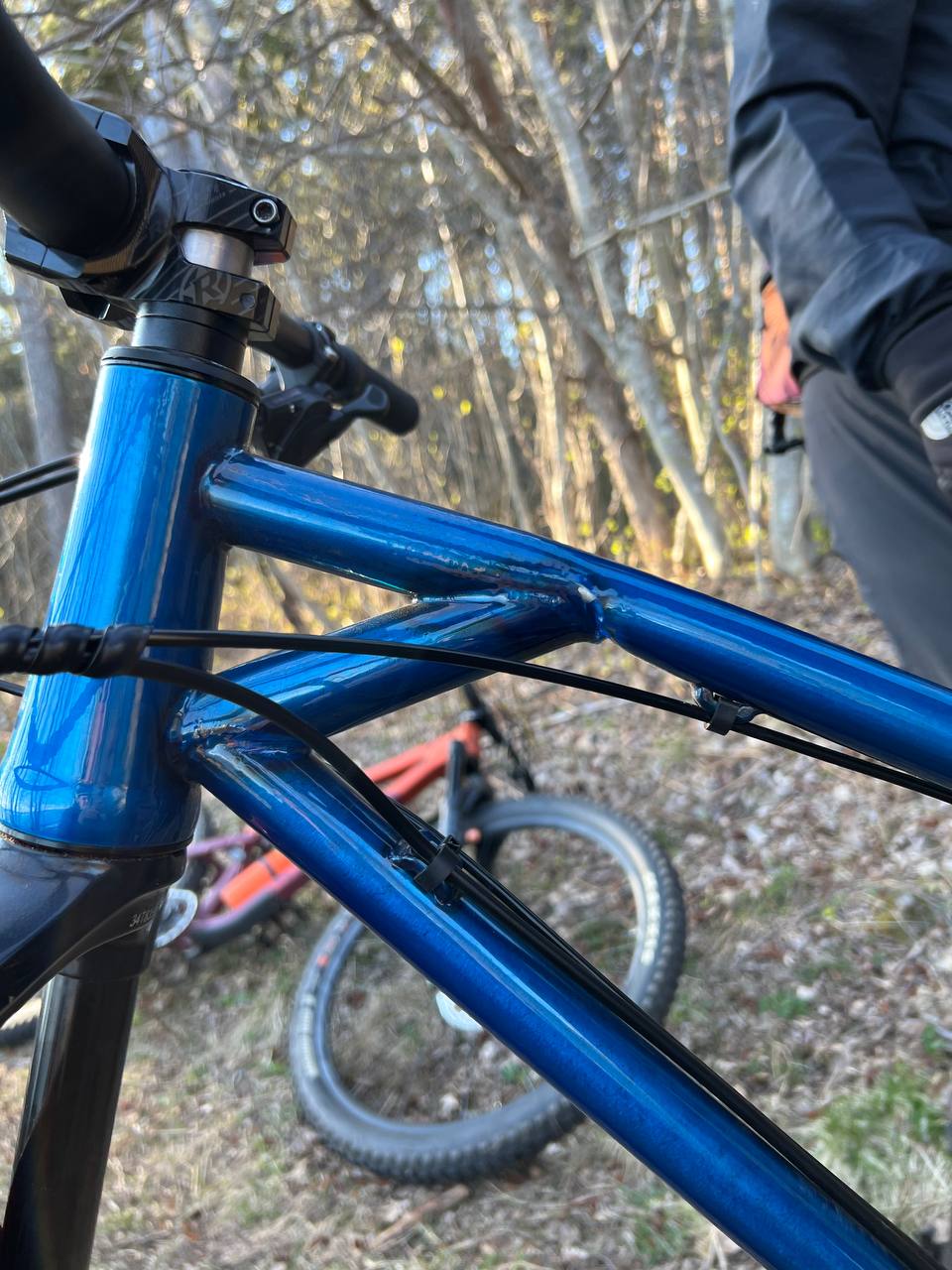 А если про байк и раму — то меня сильно смущает микрописечный рулевой стакан, ничего хорошего для рулевой в этом нет, очень высокие нагрузки. Лучше бы они сделали прямо опущенный вниз Г-образный вынос…