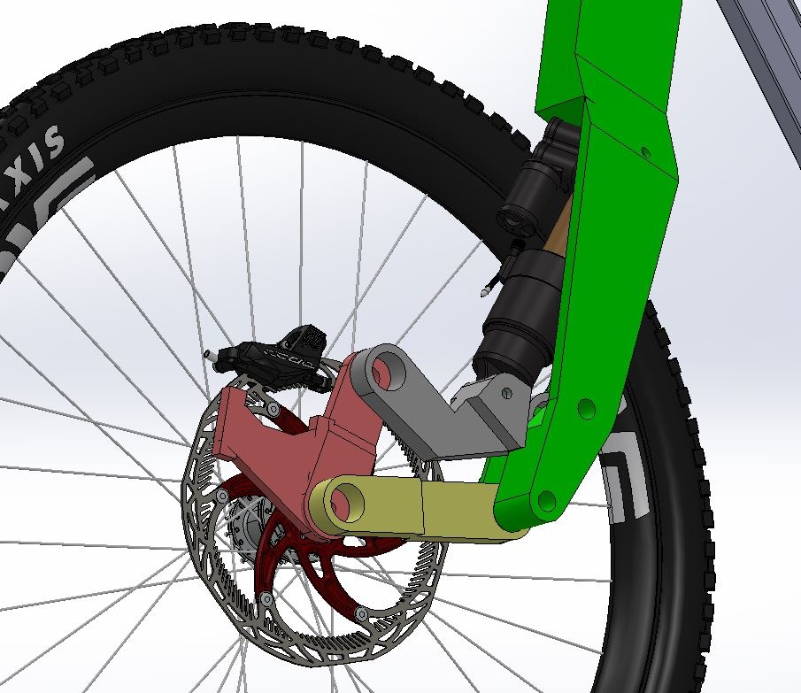 Если шарнир поднять повыше, то можно сделать так, что антискват будет достаточный за счёт силы трения и натяжения цепи уже не потребуется. Поэтому у нас антискват останется, а педалкик можно будет убрать.